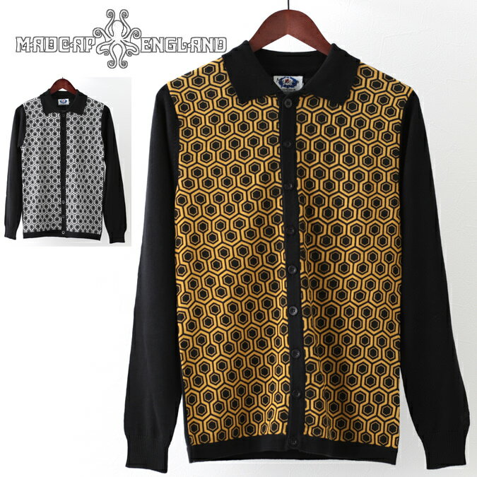 Madcap England カーディガン オーバールック 2色 ブラック ブラックホワイト ニット ハニカム マッドキャップ メンズ プレゼント ギフト