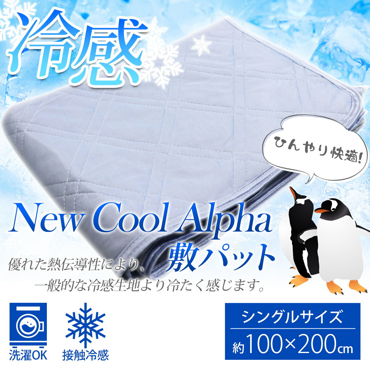 冷感 ニュークールアルファ 敷パット シングルサイズ サックス 約100×200cm 【暑さ対策 接触冷感敷きパッド ひんやり敷きパッド 寝具 夏場】